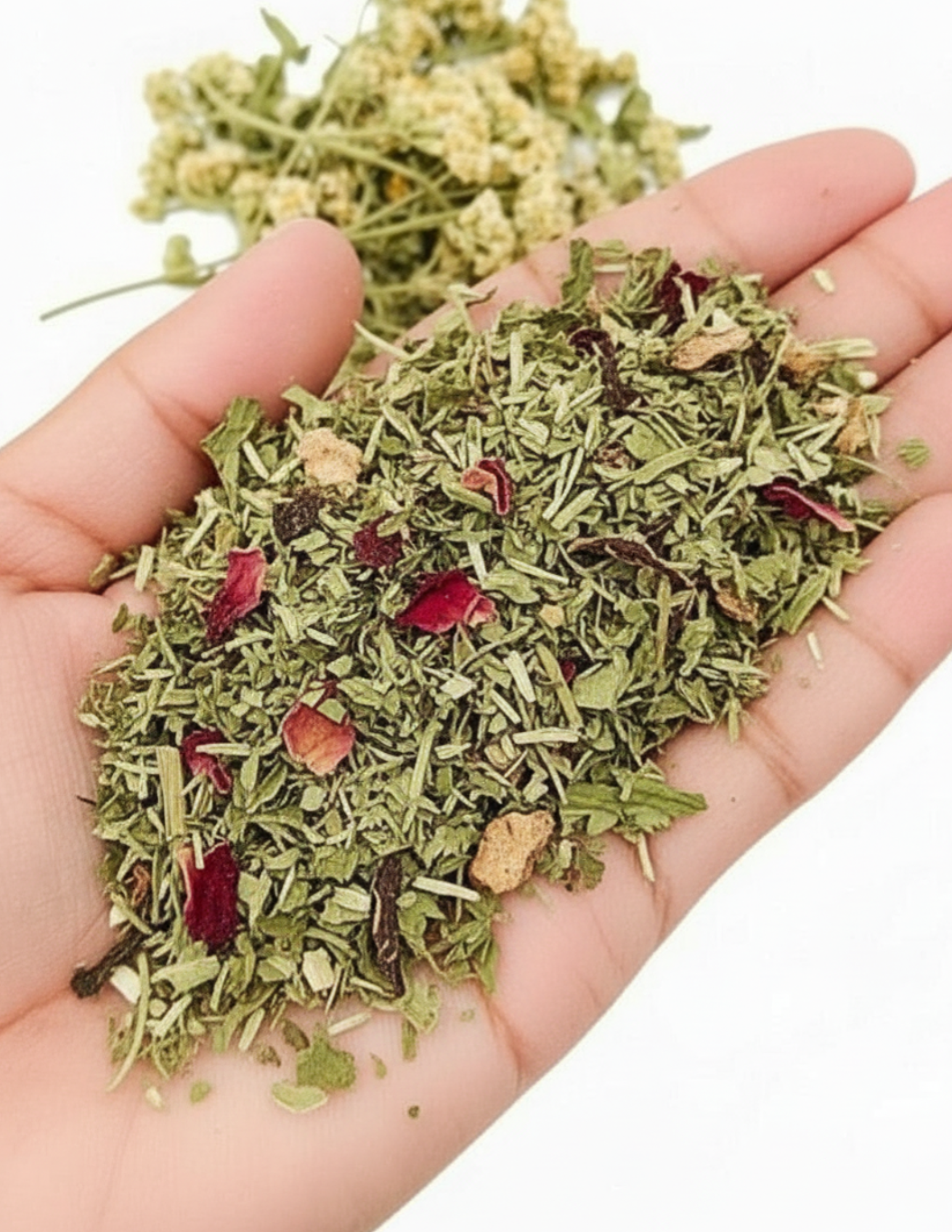 At the heart of this blend is Nettle Leaf, a nutrient-dense herb rich in iron, calcium, and essential minerals, known for replenishing the blood and supporting steady energy throughout the day. Red Clover brings additional support to the blood and reproductive system, enhancing circulation and promoting overall vitality. Dandelion Root supports liver function and aids mineral absorption, clearing the way for improved vitality and nourishment. Burdock Root adds deep nourishment and gentle detoxification, grounding the blend with its earthy strength. Rosehip, packed with vitamin C, enhances both flavor and iron absorption, while Peppermint offers a refreshing finish and soothing support for digestion.